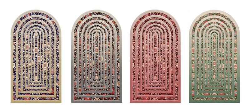 "Transcendence" is a collaboration with Zuleya by FBMI, an initiative that empowers women carpet weavers in Afghanistan. It is a meditation or prayer mat, that, thanks to graphic and depth